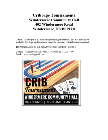 | Sat Mar 21, 1pm Crib Tournament |