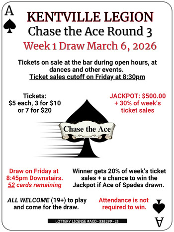 CHASE THE ACE IS BACK! Round 3 starts this week with our first draw on Friday at 8:45pm. The jackpot starts at $500 and grows by 30% of weekly sales until the Ace of Spades ♠ is drawn.