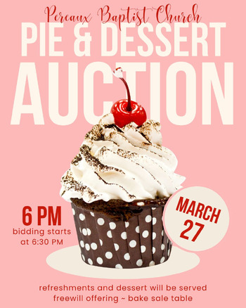 Our fourth annual Pie & Dessert Auction is on Friday, March 27 with doors opening at 6:00 PM, bidding starts at 6:30 PM.