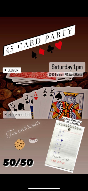Monthly 45 card Tournament - all welcome (just learning come learn too) - second Saturday each month
