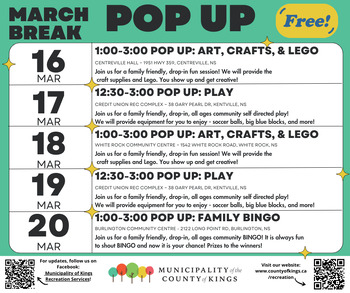 Come join us to any of these FREE drop in programs offered every day this March Break!