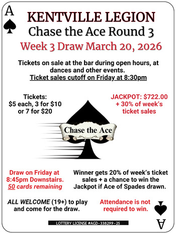 | Mon Mar 30, 7pm Kentville Legion Volunteer Meeting |
