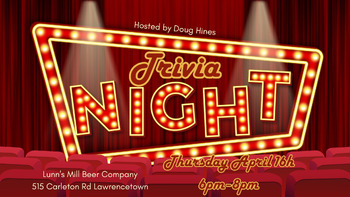 Trivia Night with Doug Hines is a fun evening filled with miscellaneous knowledge questions and the very popular double points music round. Bring your team up to 6 people and compete for the big prize!