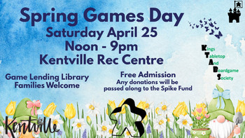 Join us at the Kentville Recreation Centre for a game or ten! We provide a lending library with a wide range of games. Stop by for an hour, or stay the whole day - families are welcome, children 12 and under must be accompanied by an adult.