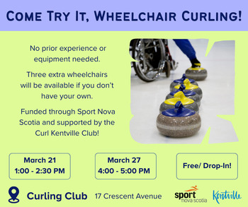 Come join us in some Wheelchair Curling at the Kentville Curling Club!