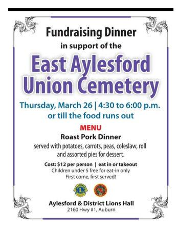 Delicious Meal for $12.00 with Dessert incl your support to a great cause. (Kids 5 and under FREE Dine in ONLY)