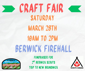 Craft Fair Fundraiser at Berwick Firehall to support 2nd Berwick Scouts. BBQ onsite. Over 25 vendors. Lots of great items for Easter.