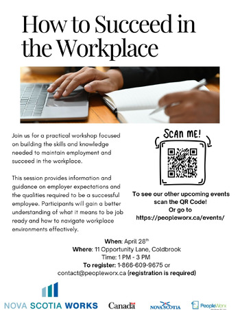For more information or to register, contact [email protected] or 1-866-609-9675. Registration as a Nova Scotia Works Job Seeker Client is required. This is a free service. Thank you for not wearing scented products when you visit.