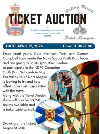Three local youth, Cole Morrison, Torin and Conner Campbell have made the Nova Scotia Youth Dart Team and are going to Saint-Hyacinthe, Quebec to participate in the NDFC Canadian Youth Dart Nationals in May.