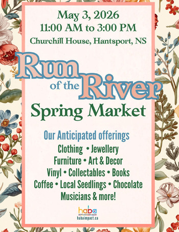 Save the date for the second annual Run of the River Spring Market. The Hantsport and Area Betterment Association (HABA) is bringing together a great mix of local makers, artisans, and vintage collectors for a full day of shopping and community.