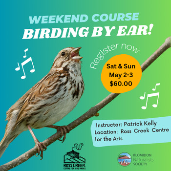 Course fee is due by Sunday, April 26. Payments are made by following this Zeffy link: https://www.zeffy.com/en-CA/ticketing/birding-by-ear-full-day-course-2 (Please note that Zeffy will request a donation, but this option is entirely voluntarily).