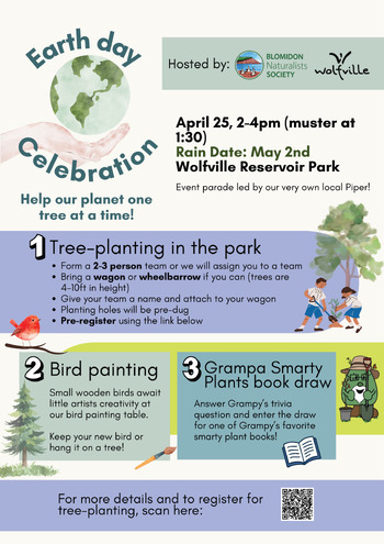 Come join us for an Earth Day celebration, hosted by the Town of Wolfville and the Blomidon Naturalists Society.