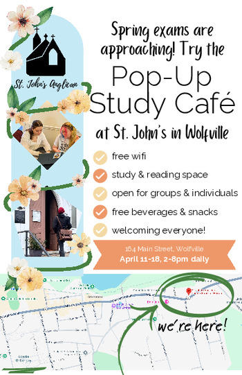 Hey students!! It's exam time - and we at St. John’s Anglican Church have got a space for you. Come by the church for free beverages and snacks.