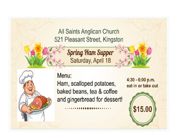 Menu : ham, scalloped potatoes, baked beans, tea & coffee, and gingerbread for dessert!