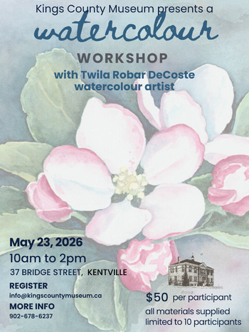 In this hands-on workshop participants will paint water coloured apple blossoms on 5.5 x 7.5 cold pressed 140 lb paper (provided). All necessary brushes and paint will be supplied.