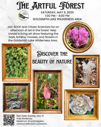 Join Save Our Old Forests (SOOF) and Citizen Scientists for an afternoon of art in the forest! Help create a living art show featuring bark, lichens, mosses — whatever catches your eye — in the forest near Camp NOW in the Goldsmith Lake Wilderness Area. Participants will be given a vintage frame (or two) and sent into the woods to find the perfect spot to hang their frame — or lay it on the ground.