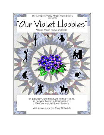 The Annapolis Valley African Violet Society is having an African Violet show and sale. Everyone is welcome to come and see some beautiful plants and to buy some of your own from our sale table.