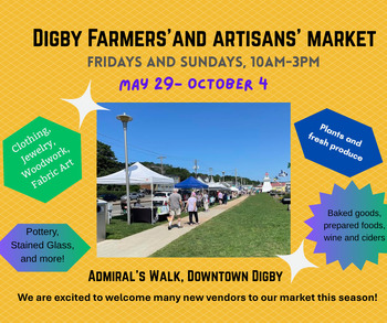 | Sun May 31, 10am Digby Farmers' and Artisans' Market |