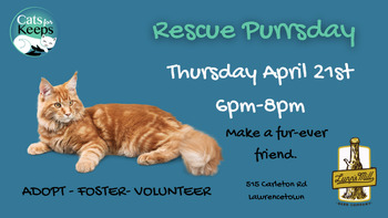 Meet the folks at Cats for Keeps on Rescue Purrsday and learn more about all they do to help kitties in our area. Come change a little life and make a fur-ever friend.