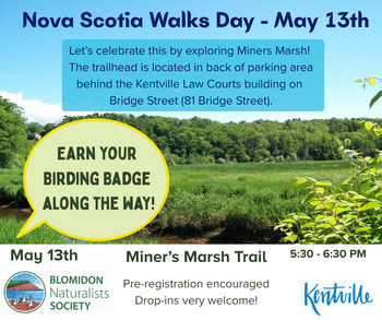 While on the walk, earn your Birding Badge along the way. Kentville Birding Challenge Badge