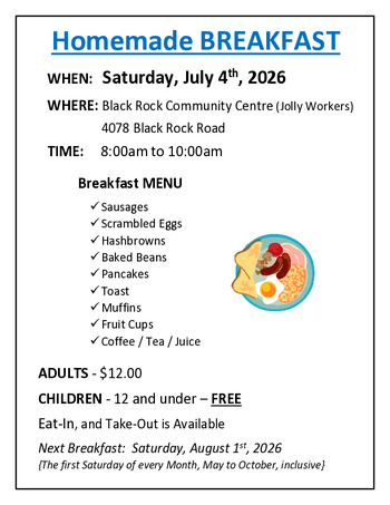 Next Breakfast: Saturday, August 1st, 2026 {The first Saturday of every Month, May to October, inclusive}