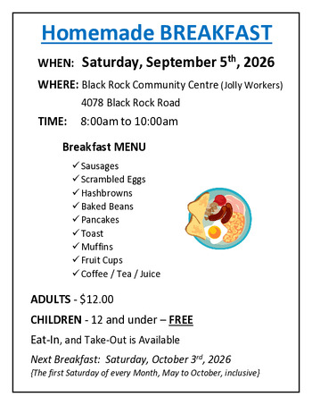 Next Breakfast: Saturday, October 3rd, 2026 {The first Saturday of every Month, May to October, inclusive}