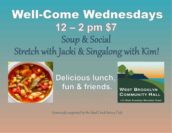 Well-Come Wednesdays feature hot lunch (soup & bun); gentle chair exercise; and music. If you are 55+ or would just like to participate, drop in and join the fun!