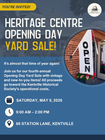 Kentville Heritage Centre's Opening Day 4th annual Yard Sale with vintage and new-to-you items. All proceeds go towards Kentville Historical Society's operational costs.