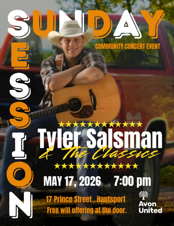 Join us for our next Sunday Session! We are hosting Tyler Salsman & The Classics for an evening of live music and community spirit. Tyler brings a traditional country sound that fits perfectly with a spring evening in Hantsport.