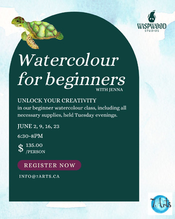 Unlock your creativity in our beginner watercolour class with Jenna. No experience necessary. All supplies included. This is a 4-part series takes place Tuesday evenings (June 2, 9, 16, & 23). Registration is required by email.