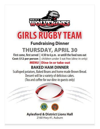 Monthly Dinner >> Proceeds go to the West Kings Wolverines Girls Rugby Team.