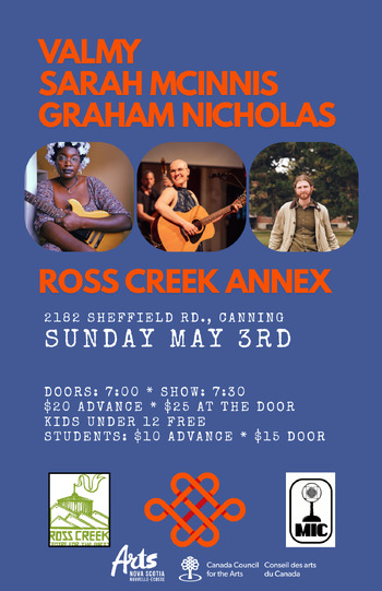 Join Graham Nicholas with friends Valmy and Sarah McInnis for a wonderful night of heartfelt music. All three of these musicians are wonderful singer-songwriters and no stranger to the MIC stage. We are excited to welcome them back to the Ross Creek Annex!