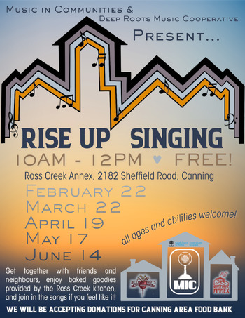 Once a month, gather at the Ross Creek Annex for coffee, treats, friends, and songs! This is a Sunday morning singalong in the spirit of the Deep Roots Festival workshop of the same name. Led by different musicians from month to month, it's a chance to sing your heart out and hear some of those great songs that lift our spirits and get us ready for whatever lies ahead.