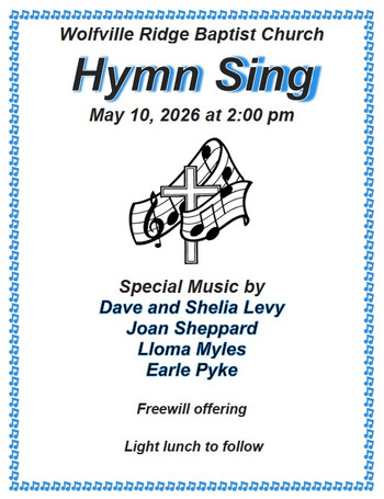 | Sun May 3, 2pm Memorial Hymn Sing |