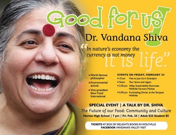 Join us in welcoming Dr. Vandana Shiva to the Annapolis Valley over complimentary coffee and tea as we discuss the future of food.