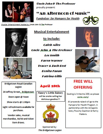 All proceeds raised will go to the Hampers for Health Program, in partnership with the Annapolis Valley Poverty Coalition & Family Matters.
