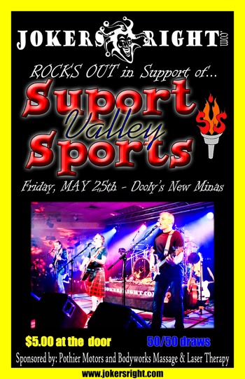 Support Valley Sports brings you Joker's Right! Come on out to support your local athletes, and rock the night away with a pretty amazing band! $5 at the door, free-will offering, and 50/50 draws. Hope to see you there!