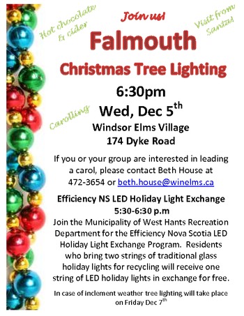 We are taking part in the efficiency NS LED light exchange with the West Hants Recreation Department 5:30-6:30 – bring in two traditional glass bulb light strings and receive a LED set free!