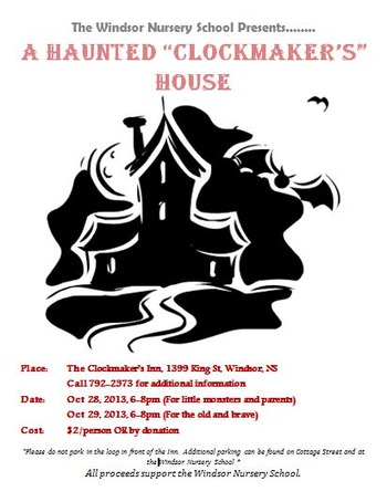 The Windsor Nursery School Presents: A Haunted Clockmaker's House. All proceeds will go to support the Windsor Nursery School.