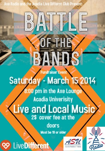 Axe Radio and the Live Different Club of Acadia University are presenting a Battle Of The Bands!