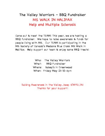We are hosting a BBQ fundraiser to support The MS Walk in Halifax this month. Join "The Valley Warriors" team to raise funds & awareness for the Multiple Sclerosis Society.