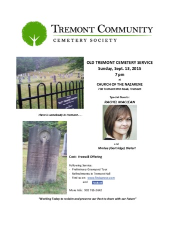 "There is Somebody in Tremont . . . ". A Community Celebration of the Old Tremont Cemetery - a night of music and nostalgia.