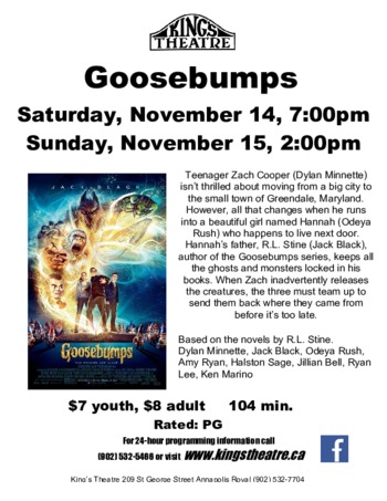 Hannah’s father, R.L. Stine (Jack Black), author of the Goosebumps series, keeps all the ghosts and monsters locked in his books. When Zach inadvertently releases the creatures, the three must team up to send them back where they came from before it’s too late.