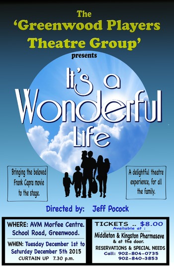 The Greenwood Players present “It's a Wonderful Life" on their stage. Curtain goes up at 19:30, sharp.