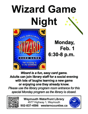 Wizard is a fun, easy card game. Adults can join library staff for a social evening with lots of laughs learning a new game or enjoying one they already know. Please use the library program room entrance for this special Monday program as the library is closed.