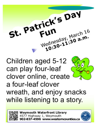 Children aged five to 12 can play four-leaf clover online, create a four-leaf clover wreath, and enjoy snacks while listening to a story.