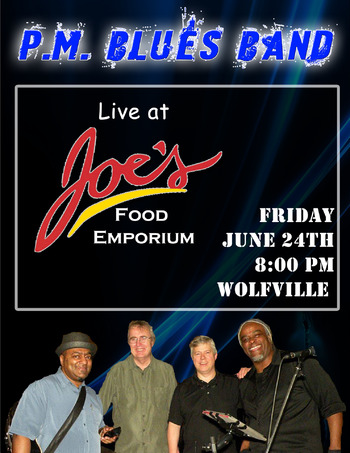The PM Blues band consists of Mark Riley on rhythm guitar and vocals, Paul Benteau on lead guitar, Tim Fisk on drums and Gordon Blackmore on bass.