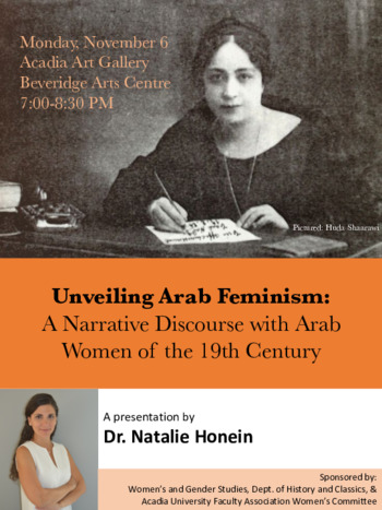 Dr. Natalie Honein will give a presentation entitled, "Unveiling Arab feminism: A narrative discourse with Arab women of the 19th century".