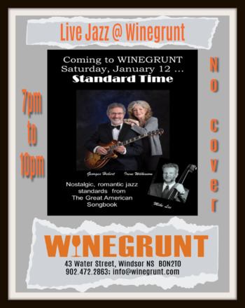 Live Jazz with Standard Time! Irene Wilkinson (vocals), Georges Hébert (guitar), and Mike Lee (bass) bring The Great American Songbook to Windsor, NS. No cover.