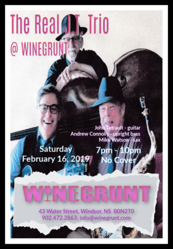 The Real J.T. Trio of John Tetrault on guitar, Andrew Connolly on bass, and Mike Watson on sax, jazz it up. No cover. Come catch some quality music with this excellent trio.